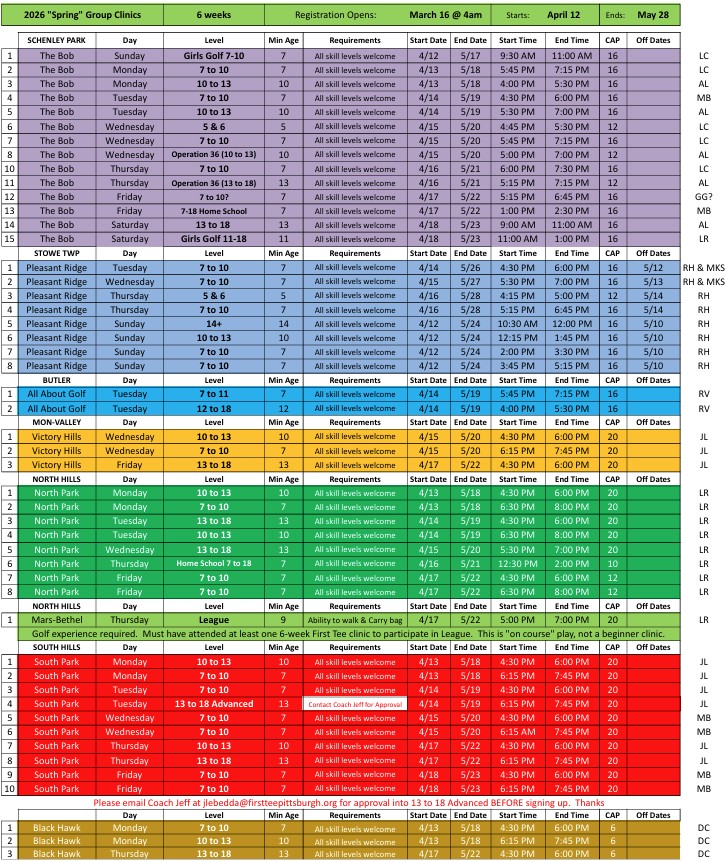 - Spring classes meet for a total of 6 weeks.
